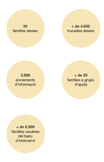 A través dels grups de suport emocional s’han posat en contacte famílies que han patit un problema similar, i el fet de poder parlar obertament i veure el problema d’altres famílies els ajuda a agafar perspectiva i reduir l’angoixa que els provoca la situació.