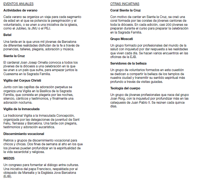 Desde el secretariado de pastoral con jóvenes del Arzobispado de Barcelona se quiere ayudar a los jóvenes de Barcelona a establecer una relación personal con Cristo, profundizar en esta relación y descubrir su llamada a la misión, fomentando la comunión.